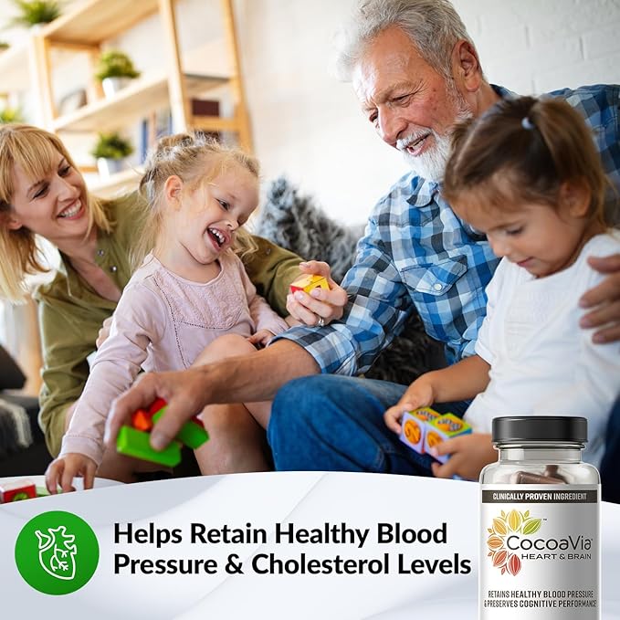 CocoaVia Heart & Brain Supplement, 30 Day, Cocoa Flavanol Extract, Memory & Circulation Booster, Nitric Oxide, Boost Oxygen & Energy, Plant Based, Gluten Free, Vegan, 60 Capsules