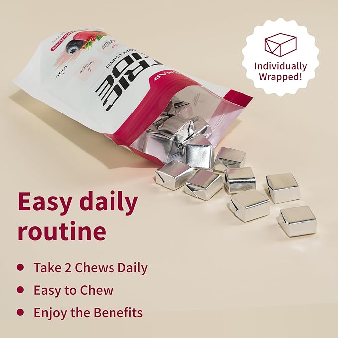 - Naturally Promotes Energy & Performance: Packed with vitamins B3 and B12, our soft chews help optimize energy metabolism, providing a natural energy boost without the sugar crash.