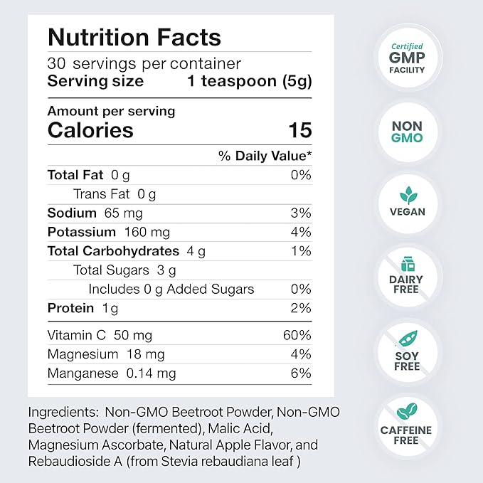 - Beet Root Powder That Tastes Fantastic – Each serving of SuperBeets Powder delivers the functional benefit of 40 teaspoons of fresh beets, without the beet taste. Non-GMO, premium beets grown in the USA. Feel invigorated throughout the day. Simply mix a teaspoon of SuperBeets Beet Root Powder in 4-6 oz. of water or a smoothie to activate all of the circulation superfood benefits.