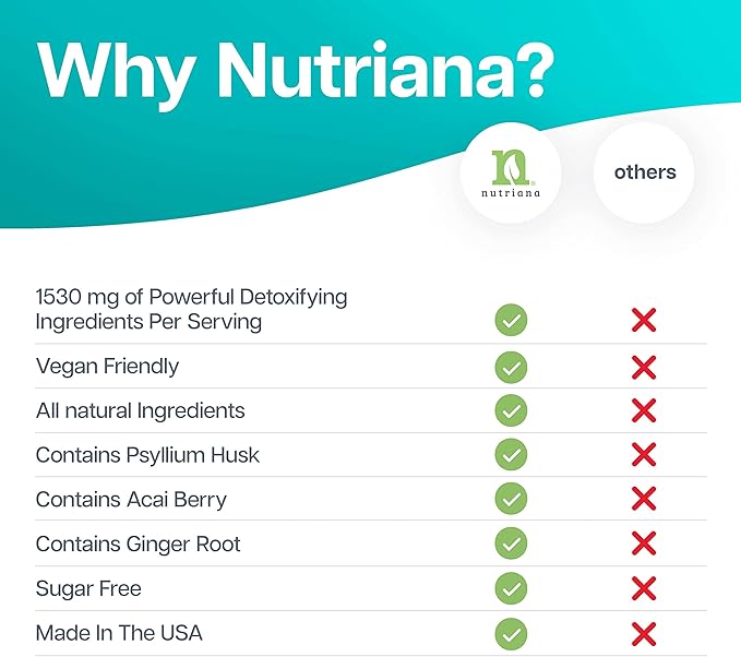 - GET HEALTHIER SKIN & ACHIEVE YOUR FITNESS GOALS using this liver detox & fasting supplement. Nutriana’s gut cleanse & detox pills are designed to help you achieve & maintain a healthy weight, all while supporting healthy skin. With each serving of these cleanser detox pills, you will get 1,530 mg of premium detox blend.