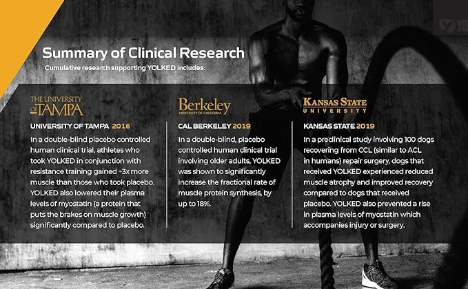 - All Natural MUSCLE GROWTH SUPPLEMENT: Made from fertilized egg yolks, YOLKED has unique complex molecules that increase muscle building and decrease muscle loss.