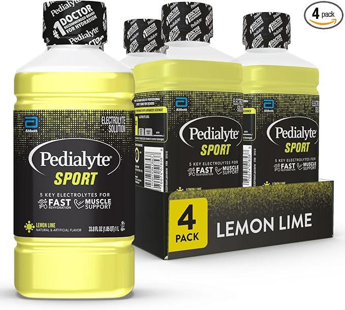 Pedialyte Sport Electrolyte Drink, Fast Hydration with 5 Key Electrolytes for Muscle Support Before, During, & After Exercise, Lemon Lime, 1 Liter, Pack of 4