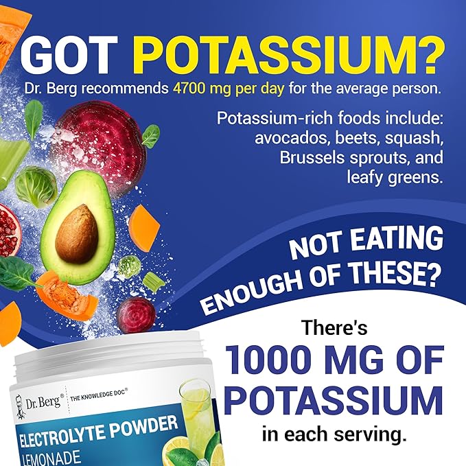 Dr. Berg Zero Sugar Hydration Keto Electrolyte Powder - Enhanced w/ 1000 mg of Potassium & Real Pink Himalayan Salt (NOT Table Salt) - Lemonade Flavor Hydration Drink Mix Supplement - 50 Servings