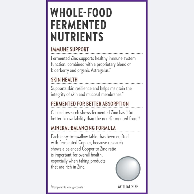 - BETTER ABSORPTION: Clinical research shows fermented Zinc has 1.6x better absorption+ than the non-fermented form