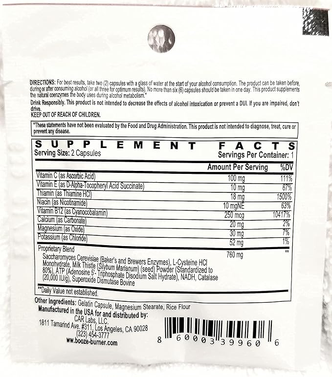 - 🍷Booze Burner 🍷 Take at the start & wake up smart. It is packed with vitamins, minerals, electrolytes and enzymes that will support strong liver health and replace nutrients lost when consuming alcohol.