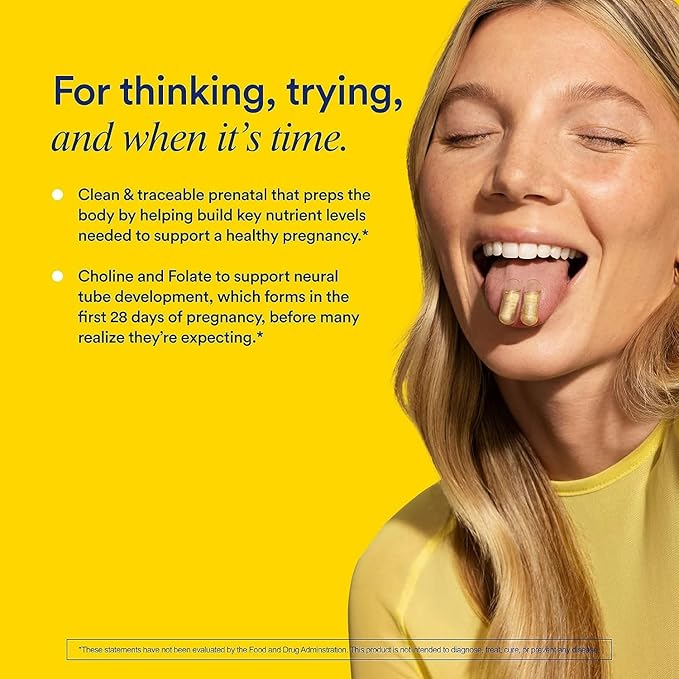 - ESSENTIAL FOR WOMEN PRENATAL MULTIVITAMIN: is for thinking, trying, and when it's time. It’s formulated with key nutrients for before and during pregnancy, including Omega-3 DHA, Choline, and Folate. Plus it’s designed to be gentle on the stomach. Our formula is vegan, sugar-free, gluten-free, dairy-free, nut-free, soy-free, and formulated without stevia, sugar alcohols, and artificial colors, flavors, or sweeteners.*