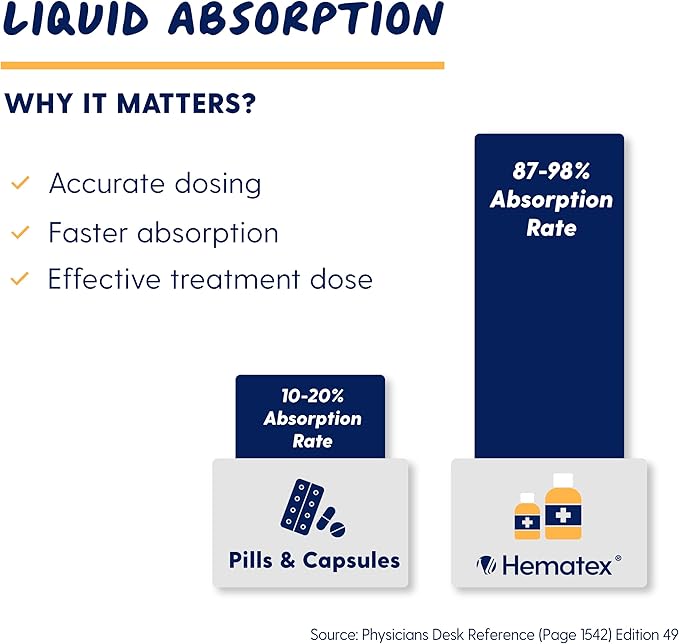 Iron Supplements for Men High Potency Liquid Iron for Adults by Hematex - 100mg Polysaccharide Iron Complex Iron Supplements for Anemia and Iron Deficiency