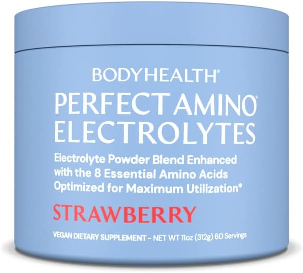 BodyHealth PerfectAmino Electrolytes Powder, Hydration Powder, Sugar Free Electrolyte Drink Mix, Keto Electrolytes Powder, Non GMO, Strawberry Flavor (60 Servings)