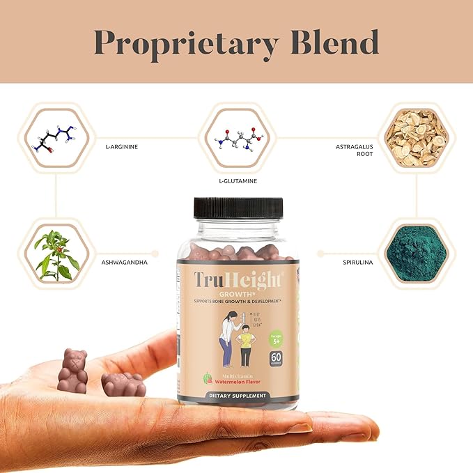 - TRUHEIGHT GROWTH GUMMIES FOR KIDS & TEENS: TruHeight's growth gummies contain a responsibly sourced collection of vitamins and minerals, including Ashwagandha, Calcium, Vitamin D, and Vitamin K, culminating in natural growth and development.*
