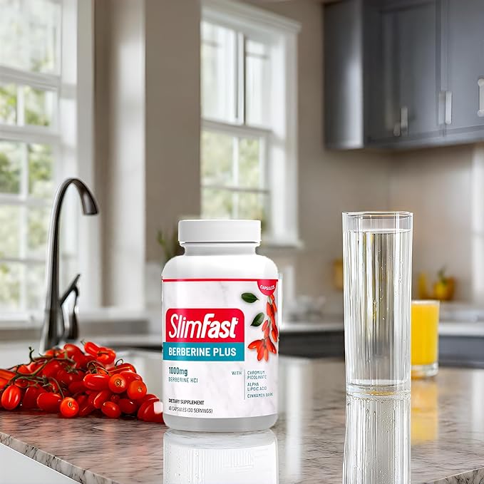 SlimFast Berberine Plus Capsules, Berberine Supplement, with Berberine hcl, Chromium Picolinate, Alpha Lipoic Acid, and Cinnamon Bark, 60 Count, 30 Servings