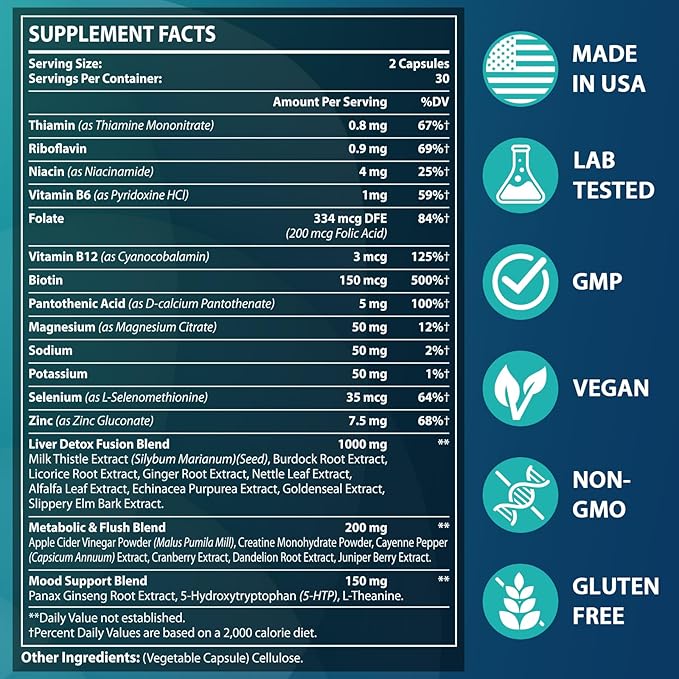 - More Effective & Powerful: Our liver detox capsules use milk thistle, burdock root & licorice root, plus B vitamins, electrolytes & creatinine, to target toxins in key organs like the liver, kidneys, & digestive system for superior detox results