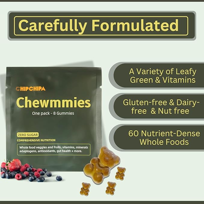 Chewmmies Gummy Vitamins - Daily Supergreens Supplement with Whole Food Fruits, Vegetables, Mushrooms, Prebiotics, Vitamins, Minerals - Supports Immunity & Digestive Wellness - 224 Gummies